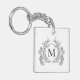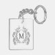 Llavero Monograma del Escudo floral blanco y negro clásico
