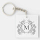 Keychain de monograma de Escudo floral blanco y negro moderno