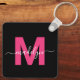 Crea tu propia y elegante cadena de claves cuadrada de monograma negro y rosa Personalizado moderno. Esta elegante cadena de teclas cuadradas le aporta un toque moderno y personalizado a sus necesidades básicas diarias. El diseño presenta un audaz monograma rosa caliente inicial centrado en un fondo negro sólido, con su nombre en un elegante guión blanco en la capa. El mismo diseño monocasco limpio y elegante se ve en ambos lados, con un aspecto pulido y ondulado negro y rosa. Perfecto para quien ama un estilo divertido y femenino, este keychain personalizado es práctico y moda. Todos los colores se pueden personalizar, para que pueda crear una versión que se ajuste a su apariencia. Ideal para cumpleaños, vacaciones o simplemente porque, este personalizado monocasco de teclado hace un regalo reflexivo o una manera elegante de llevar un registro de sus llaves, bolsas o accesorios.