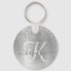 Personalice fácilmente este diseño de moda de la cadena de teclas de la moda con un purpurina brillante de bonito plateado sobre un fondo metálico plateado.