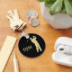 Esta cadena de llaves tiene una silueta dorada en plena oscilación. Su monograma está en oro a juego junto a la figura. El texto y la imagen se colocan sobre un fondo negro dramático. El otro lado es negro con dos campos de texto personalizado.