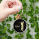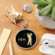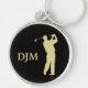Esta cadena de llaves tiene una silueta dorada en plena oscilación. Su monograma está en oro a juego junto a la figura. El texto y la imagen se colocan sobre un fondo negro dramático. Un regalo perfecto para el golfista en tu vida.