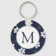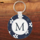 Bonito azul marino y blanco moderno patrón floral en cadena de claves personalizada.