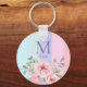 Cadena de teclas con monograma floral de rayas azules rosadas. Fácil de personalizar desde la página del producto.