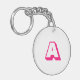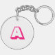Fussia rosa caliente moderna y personalizado blanco monograma letra inicial Keychain. doble cara. disponible en diferentes formas, estilos y tamaños.