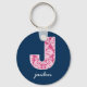 Llavero Monograma J del patrón de damasco blanco y negro c