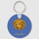 Este diseño de cadena de claves de personalizable con un fondo azul francés presenta una copia monogramada de moda de una máscara medusa dorada creada originalmente con bronce dorado en Francia alrededor de 1875 y en algún momento propiedad del famoso financista ultra rico John Pierpont Morgan. La pieza original está en la colección permanente del Museo Metropolitano de Manhattan. Según la antigua mitología griega, Medusa, también conocida como Gorgo, era una de las tres terribles gorilas mágicas, normalmente representadas como hembras humanoides aladas con serpientes venenosas vivas en lugar del pelo en sus cabezas. Presuntamente, cualquiera que mirara a los ojos de Medusa se convirtió en piedra. Puede cambiar fácilmente el color de fondo, la ortografía del texto; el estilo del tipo de letra, el color y el tamaño con los botones Personalizar y Editar de Zazzle.