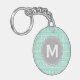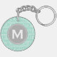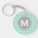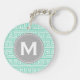 Patrón de clave greco suave, moderno, geométrico, ondulado en verde menta y blanco con un marco de etiqueta de círculo gris para la letra inicial de su monograma personalizado. Una impresión de patrón fresca, femenina y elegante con un toque personal que hará un regalo de moda y único para chicas/mujeres.