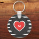 Llavero Monograma moderno de corazón rojo rayado en blanco