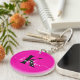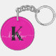 Esta cadena de teclas rosa cálido moderna con tu nombre en un tipo de letra de guión moderno en blanco y tu primera inicial en un tipo de letra de tope moderno en negro es perfecta para tus teclas. Es elegante, moderno y a la vez muy clásico.