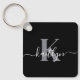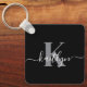 Este sencillo y elegante llavero negro con tu primer nombre en un tipo de letra de guión de moda en blanco y tu primera inicial en un tipo de letra de tope moderno en gris es perfecto para tus teclas. Es elegante, moderno y a la vez muy clásico.