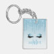 Moderno y elegante Keychain de color azul claro, de moda y de moda, personalizado con su Monograma Inicial y Nombre. Esparcen Eyelashas. Purpurina con chispas.