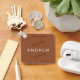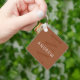 Esta elegante cadena de teclas marrón de terracota presenta una disposición moderna con un monograma vertical de gran tamaño, y su nombre en blanco tintado simple y horizontal.