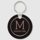 Esta cadena de claves personalizada presenta un diseño de monograma de borde dorado falso rosa sobre un fondo negro. Personalízalo con tu nombre y inicial.