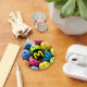 Un colorido llavero con un patrón de bolas de picnic sobre un fondo negro. Hace el regalo perfecto para los amantes del pickleball.Puede cambiar la letra en el menú personalizar.