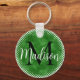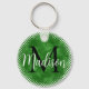 Cadenas de llaves personalizados en verde. Arte abstracto en el fondo. Edite la inicial y el nombre para hacerlo personalizado. Idea de regalo.