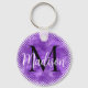Cadenas de llaves personalizados en morado. Arte abstracto en el fondo. Edite la inicial y el nombre para hacerlo personalizado. Idea de regalo.
