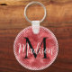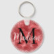 Cadenas de llaves personalizados en rojo. Arte abstracto en el fondo. Edite la inicial y el nombre para hacerlo personalizado. Idea de regalo.