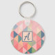 Cadena de claves con un primer monograma inicial personalizado con colores rosa verde y azul