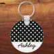 Llavero Monograma Personalizado de puntos de polka negro