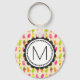 Un llavero con un dulce patrón de verano con paletas y helados en coloridas y vibrantes acuarelas. Escriba su monograma personalizado dentro de un marco redondo con una forma de flor caprichosa.