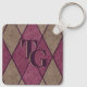 Añade un estilo personalizado a tus accesorios con una cadena de teclas hecha por personalizado. Motivo retro clásico de color púrpura de diamante Argyle Monograma Keychain inicial. Personalice con sus propias iniciales. Gran idea de regalo.