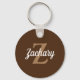 Esta cadena de claves personalizada presenta un monograma de color marrón y un nombre de guión retro blanco sobre un fondo marrón.