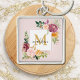 Llavero Monograma Rosa de acuarela elegante Botánica flora