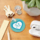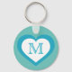 Este llavero presenta un corazón blanco delineado en azul turquesa sobre el que se ha colocado una plantilla monograma inicial.