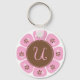 Llavero Monograma U marrón y rosa