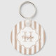 Añada moda y estilo a su estilo personal con esta cadena de teclas de rayas pintadas de color precoz y blanco angustiado. Personalice este diseño de color marrón claro lindo y elegante añadiendo el nombre y el monograma inicial de la joven de moda.