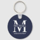 Clásicos Regalos de Groomsmen Personalizados con monograma, nombre y título personalizados del groomsman en blanco clásico estilo de letra serif sobre fondo azul marino. También perfecto para el mejor hombre, padre de la novia y más.