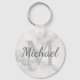 El Monograma personalizado y el Regalo de nombres presentan un nombre personalizado en el estilo de fuente de escritura gris y un monograma en el estilo de fuente serif gris claro como fondo, sobre fondo de mármol blanco. Perfecto como regalo de vacaciones, favores de reunión familiar, gracias a los padrinos y regalo para cualquier ocasión especial.