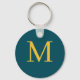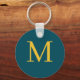 Un elegante keychain personalizado con un monograma inicial amarillo sobre fondo verdoso. Puede personalizarlo y personalizar para agregar su inicial en la parte delantera y trasera de la cadena de claves.