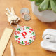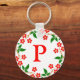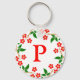 Llavero Monogramado blanco floral rojo Bonito moderno