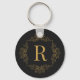 cadena de teclas de botón redondo monogramada de marco cuadrado dorado elegante