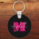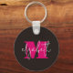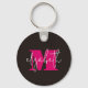 En esta divertida cadena de claves aparecen un elegante monograma inicial y tu primer nombre con letras en blanco y rosa moda en negro.
