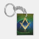 Elegante cuadrado dorado y brújula símbolo masónico, cadena de claves personalizada con un fondo fractal moderno.