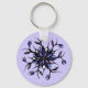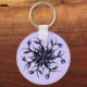 Llavero floral gótico con un fresco ilustracion de mandala extraño - dibujo de tinta digitalmente de una extraña flor con monstruos reptiles con dientes afilados en colores negro, violeta y azul.