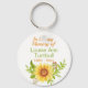 Una hermosa cadena de claves Memorial compuesta por girasoles florales de color amarillo acuático y la cita "En memoria amorosa". Hace una encantadora celebración de la vida o para repartirla en funerales y wakes . Personaliza con un nombre y fechas. La cotización puede modificarse si es necesario.