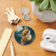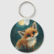 A sweet, wide‑eyed fox sits beneath a glowing yellow moon, surrounded by soft blue night tones and gentle wisps of grass. The illustration blends warm orange fur with cool, dreamy colours, creating a cosy, magical woodland atmosphere. Perfect for anyone who loves whimsical wildlife art and serene nighttime scenes.