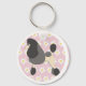 Esta cadena de teclas inusual, tirada por la cremallera, muestra mi diseño de un Show Poodle negro de un tamaño incalculable contra un fondo rosa claro, con margaritas. Un regalo perfecto para los amantes del Poodle y un colorido accesorio.