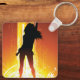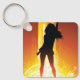 Una mujer disco parada en una danza posan sobre un fondo dorado. Este diseño parece realmente efectivo en esta cadena de claves