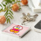 Pingüino geeky lindo del rosa del dibujo animado del chica que lleva a cabo el corazón rosado