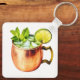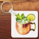 Un refrescante cóctel de mula moscovita servido en una taza de cobre con hielo, cal y hojas de menta, perfecto para una refrescante bebida de verano.