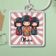 Este llavero personalizado cuenta con 3 adorables muñecas kokeshi japonesas coloridas.