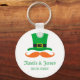 Fun St Patricks día de boda favorece la cadena de claves con un gorra leprechaun y bigote divertido de jengibre. Fecha y nombre del boda del personalizable y del novio. Favoritos para los bodas temáticos de San Paddys.