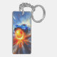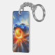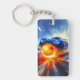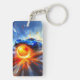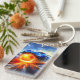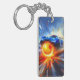 Impressionist painting of a blue Dominus car from Rocket League, hitting a glowing orange ball with immense force. The scene is chaotic and energetic, with streaks of light and color representing the speed of the vehicles and the ball. Focus on the texture of the paint and the impressionistic style, creating a sense of motion.