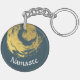 Namaste Yoga Studio Meditation Instructor Keychain Templates - Elegant Blue and Faux Relieve metalizado dorado Brushstrokes ZEN Symbol.