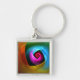 Naranja azul Patrón de arte abstracto rosa moderno n° 24 Keychain cuadrado premium